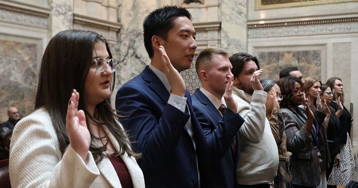 Welcome new lawyers. In January, 19 new lawyers took the oath of admission in the Wisconsin Supreme Court Hearing Room. Photo: Shannon Green